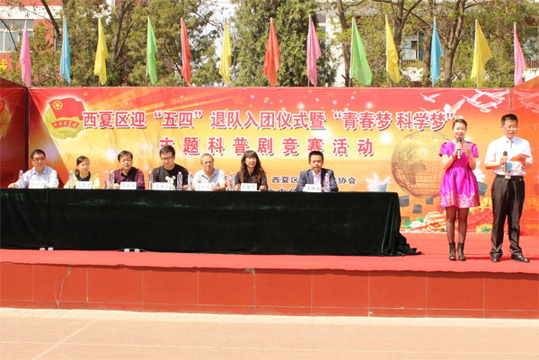 4月29日下午2点半,由西夏区科协、西夏区教育局联合主办的迎“五四”退团入团仪式暨“青春梦·科学梦”主题科普剧竞赛活动在银川市第十六中学隆重举行。本次竞赛活动邀请了银川市教育局、西夏区团委、西夏区教育局、西夏区科协等领导,西夏区共有14所中小学参与了此次竞赛。